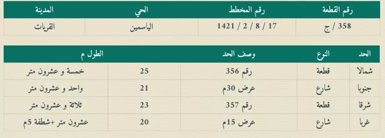 قطعة الارض رقم 358 / ج من المخطط رقم 17 / 8/ 2/ 1421 بمدينة القريات .