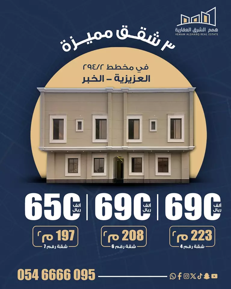 حي العزيزية بمدينة الخبر مساحة الوحدة من الأرض 95.55 متر وتختص من المنافع والأجزاء المشتركة بمساحة 39.37 متر