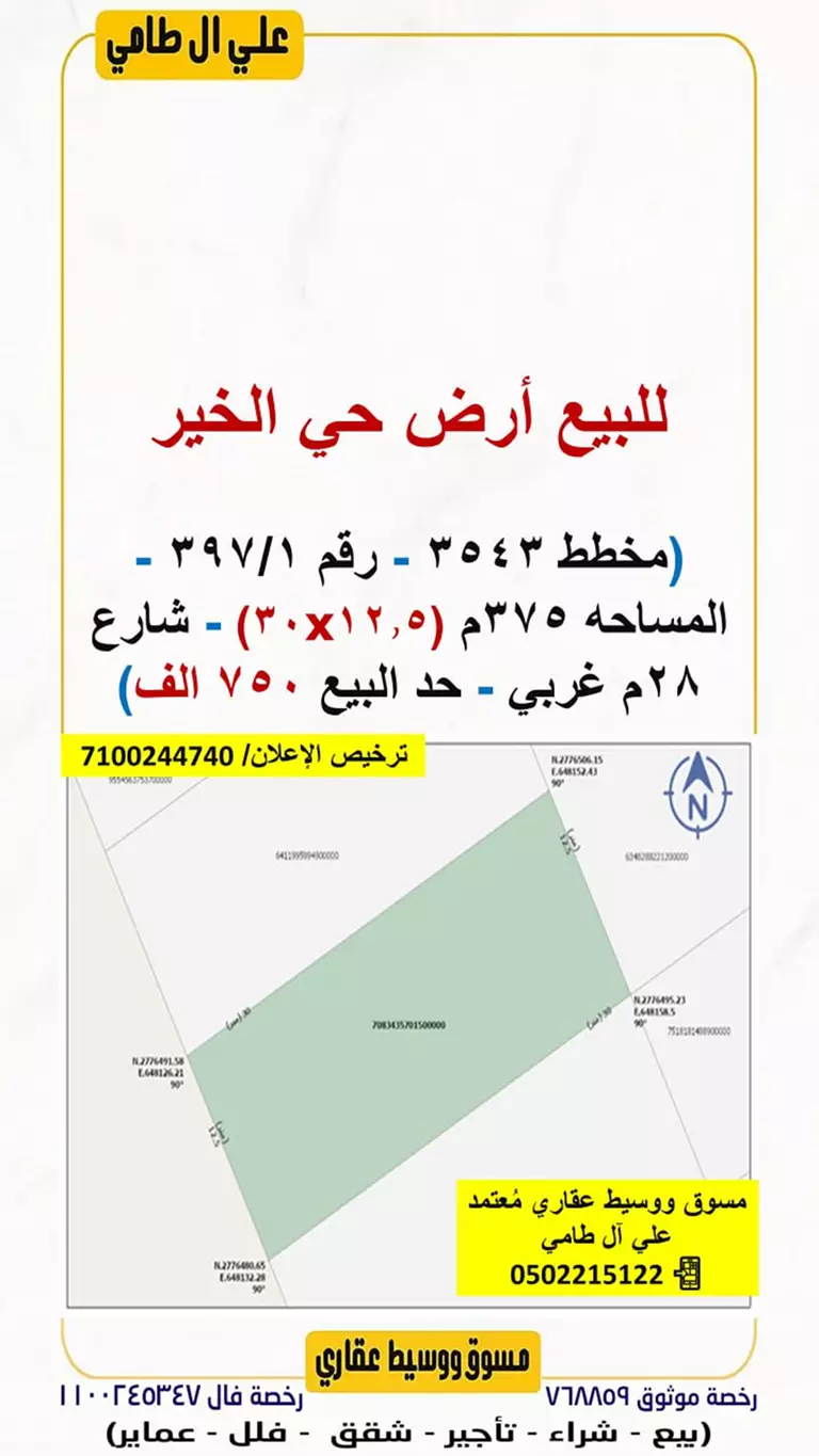 🟥 للبيع أرض حي الخير
