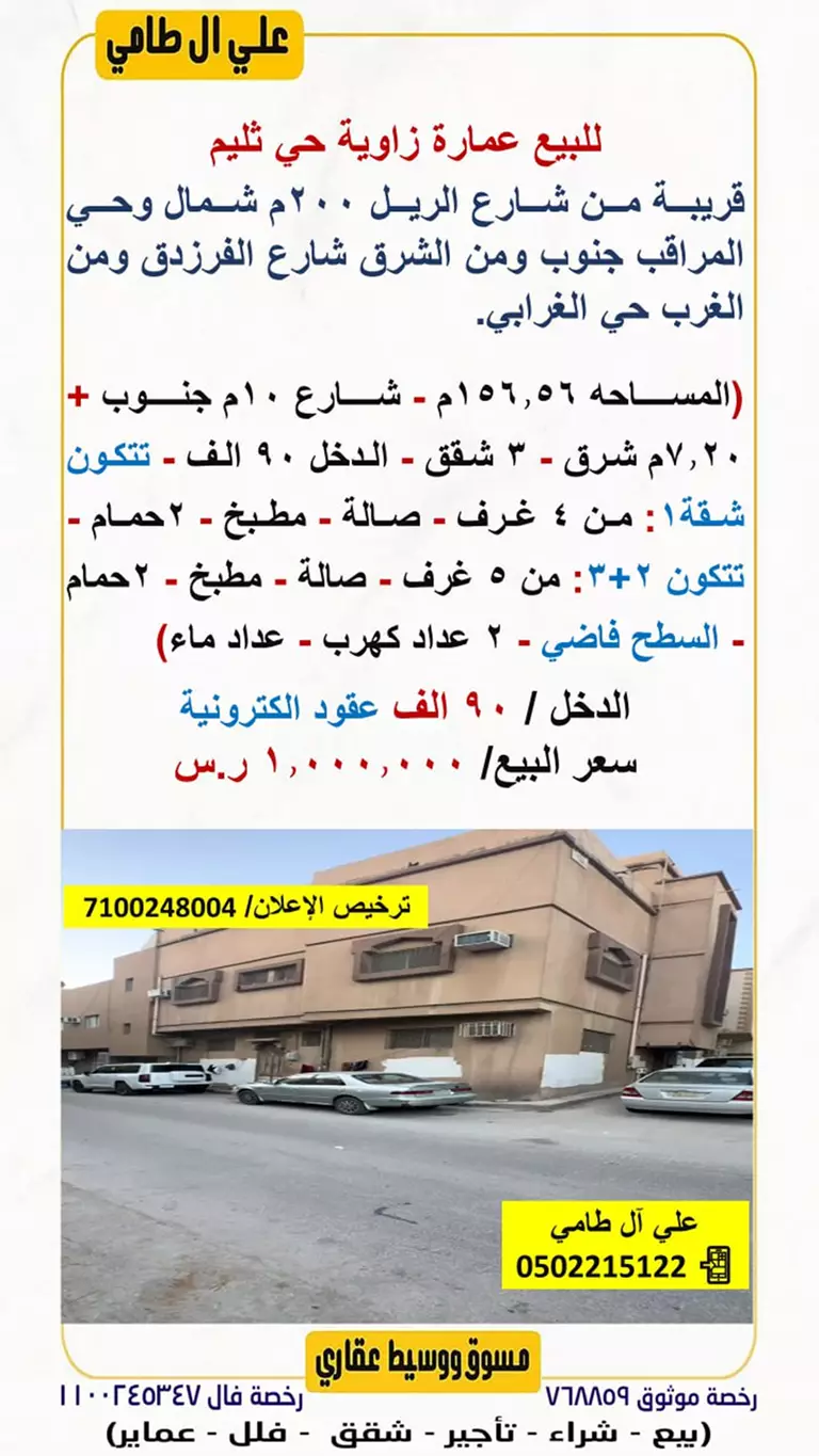 🟥 للبيع عمارة زاوية حي ثليم
