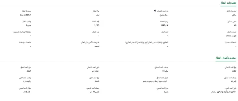 جنوب بعرض (  40 م  ) الواجهة : (  10 م  )